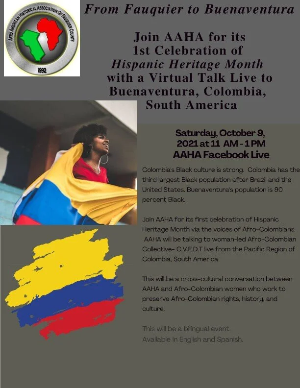 Join AAHA for its first celebration of Hispanic Heritage Month via the voices of Afro-Colombians. AAHA will be talking to woman-led Afro-Colombian Collective- C.V.E.D.T live from the Pacific Region of Colombia, South America.